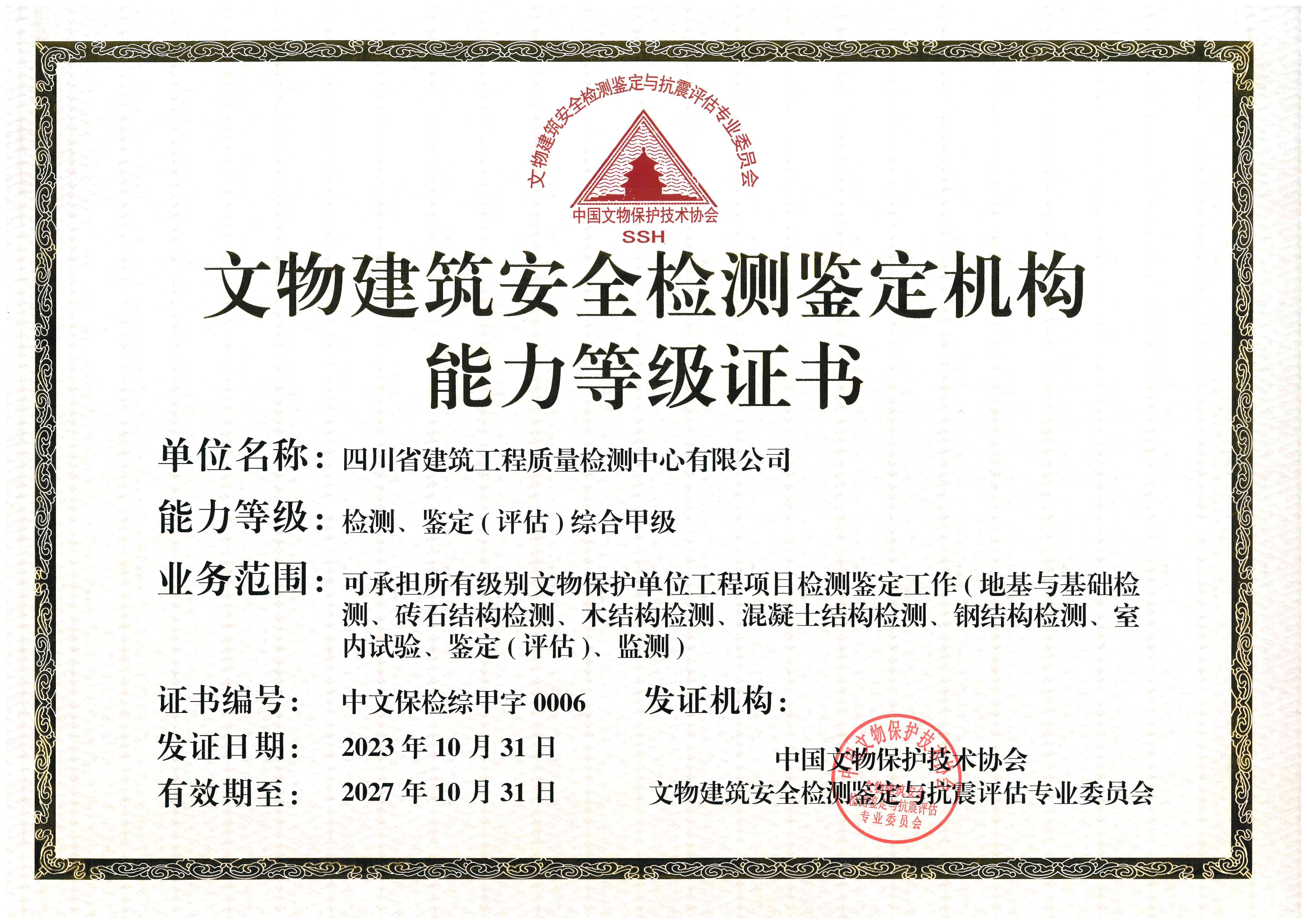 四川省建筑工程質量檢測中心有限公司前身是四川省建筑工程質量監督檢驗站,1994年四川省建委決定,在執行行業檢測任務時更名為“四川省建筑工程質量檢測中心”,于2001年8月31日在四川省工商行政管理局注冊為獨立法人的檢測機構,由四川省建筑科學研究院投資設立,其后于2018年12月27日更名為“四川省建筑工程質量檢測中心有限公司”。